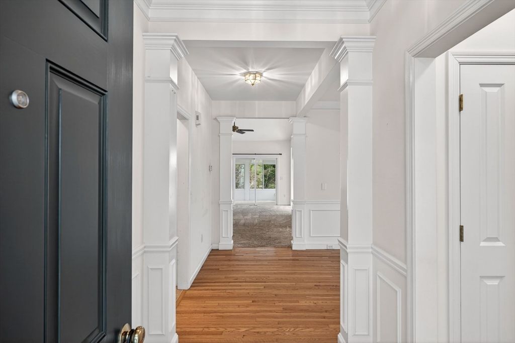 Dining Room: Flooring - Hardwood, Lighting - Pendant, Crown Molding